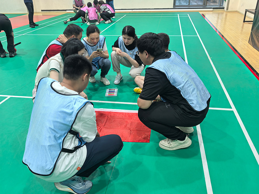 下午15时,趣味运动会燃情开赛。五支参赛队伍在羽毛球混双、团队“共进退”和拔河三个项目中展开激烈角逐。羽毛球场上,男女搭档配合默契,尽显协作精神;“共进退”项目中,各组成员步调一致、默契配合,生动诠释了“和合共生”的活动主题;压轴的拔河比赛则将现场气氛推向顶点,队员们心往一处想、劲往一处使,齐声呐喊、齐心协力,将团队凝聚力展现得淋漓尽致。