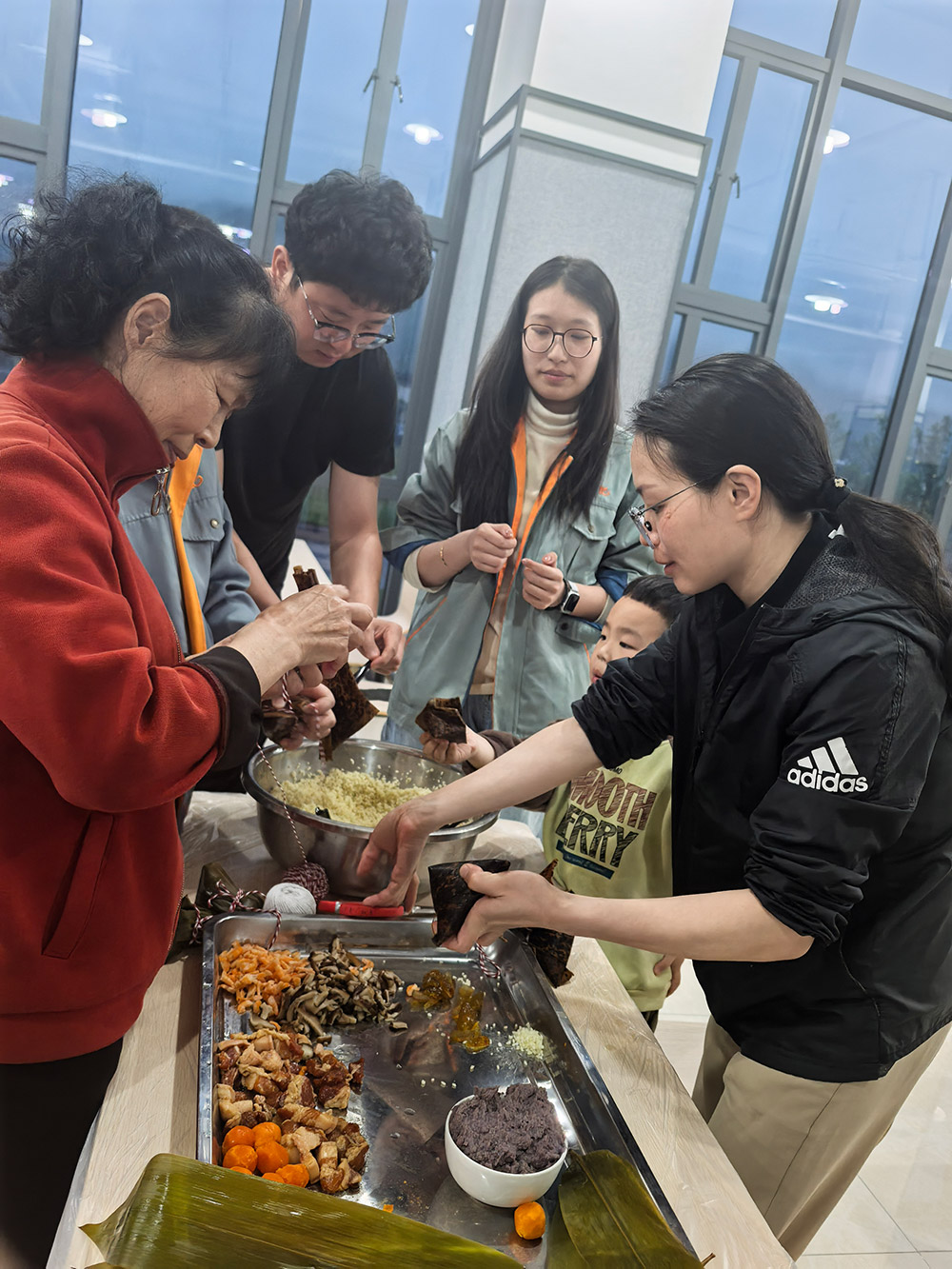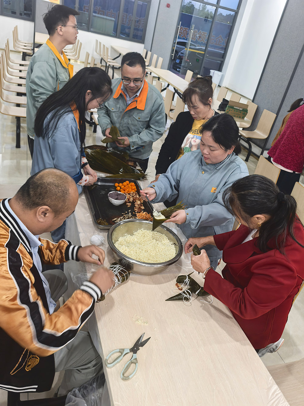 科技中心的欢笑声回荡的同时,柘荣生产基地则上演了一场温馨的“‘粽’香传情·家企共融”主题活动。来自全国各地的员工与家属齐聚一堂,将天南地北的习俗融入粽叶之中。粽叶翻飞间,三角粽、四角粽、长条粽形态各异;豆沙蛋黄、鲜肉陈皮等馅料咸甜交织。大家一边制作创意满满的“全家福”粽子,一边分享家乡端午故事,互道节日祝福,共享佳节良时。非遗文化体验与包粽技艺比拼,不但传承了传统民俗,更生动诠释了首页-澳门(金沙)官网网站首页深厚的“家文化”,让员工家属深切感受到企业的关怀。