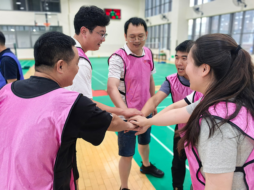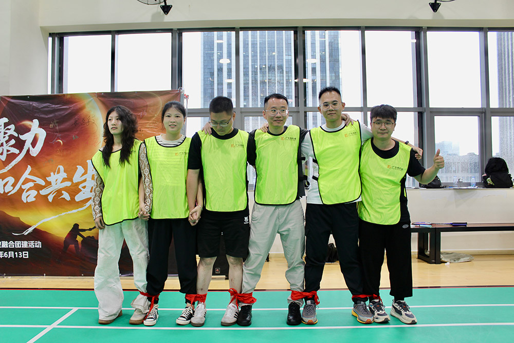 下午15时,趣味运动会燃情开赛。五支参赛队伍在羽毛球混双、团队“共进退”和拔河三个项目中展开激烈角逐。羽毛球场上,男女搭档配合默契,尽显协作精神;“共进退”项目中,各组成员步调一致、默契配合,生动诠释了“和合共生”的活动主题;压轴的拔河比赛则将现场气氛推向顶点,队员们心往一处想、劲往一处使,齐声呐喊、齐心协力,将团队凝聚力展现得淋漓尽致。