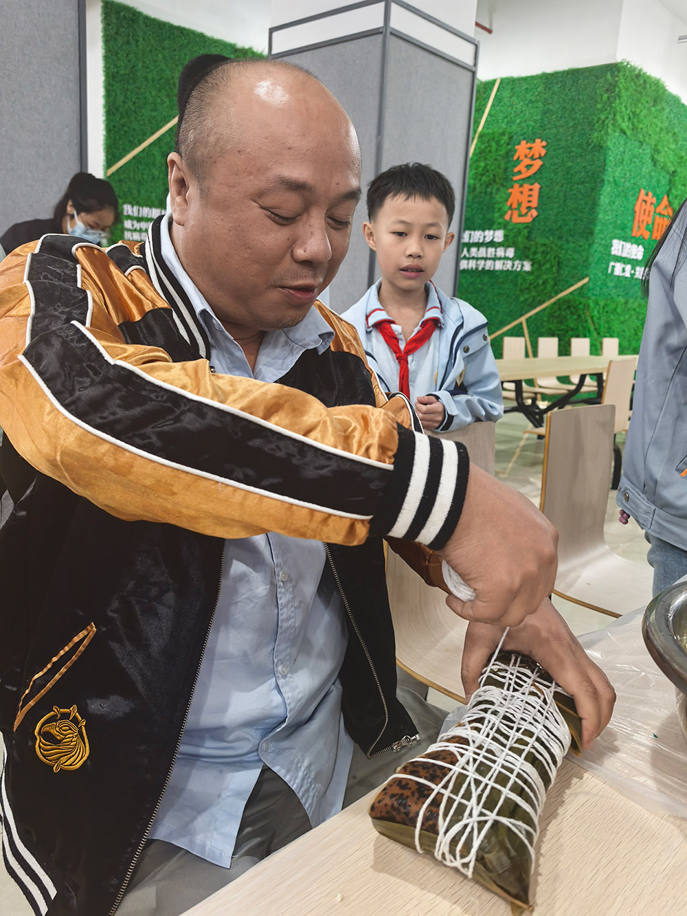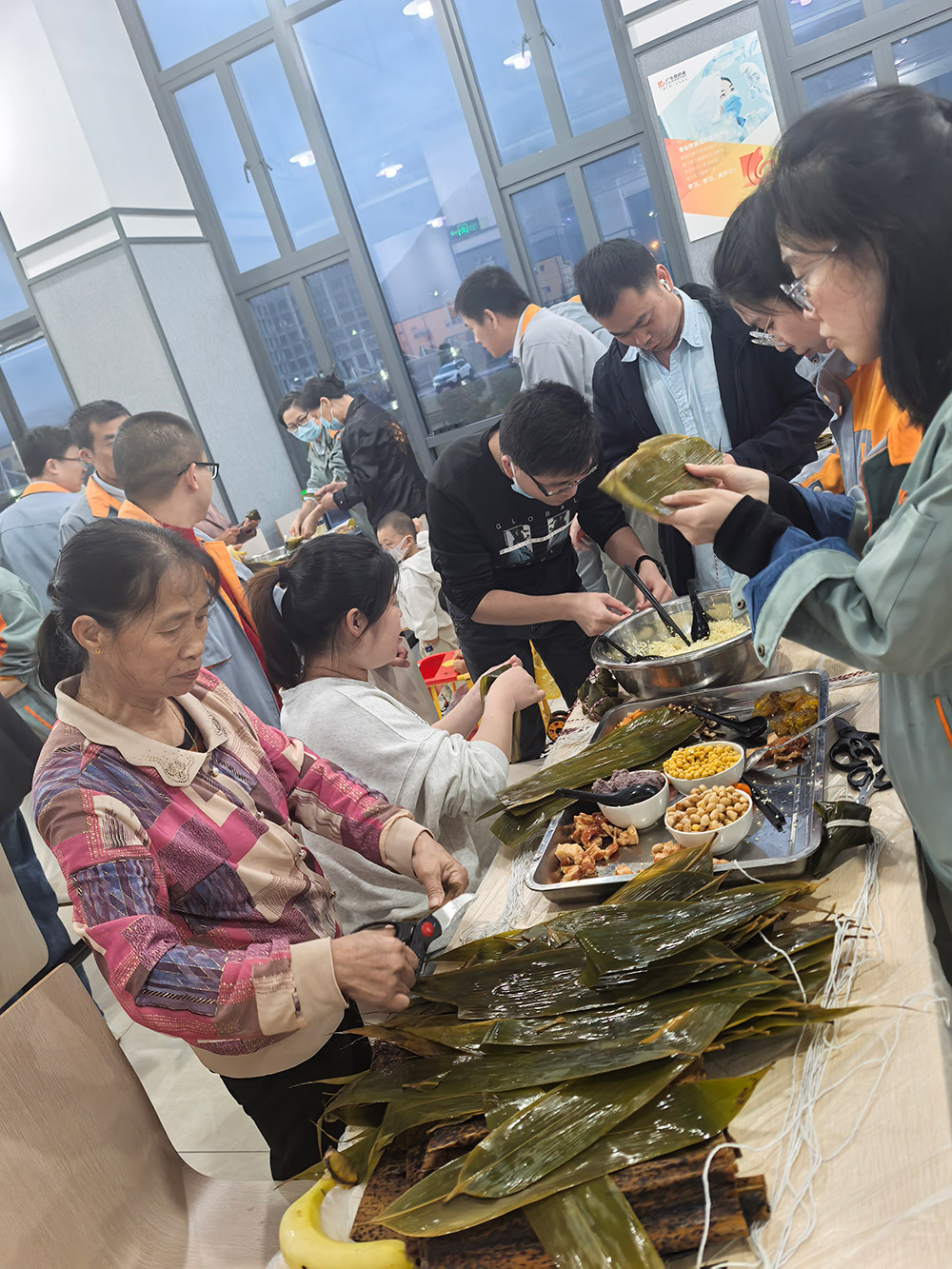 科技中心的欢笑声回荡的同时,柘荣生产基地则上演了一场温馨的“‘粽’香传情·家企共融”主题活动。来自全国各地的员工与家属齐聚一堂,将天南地北的习俗融入粽叶之中。粽叶翻飞间,三角粽、四角粽、长条粽形态各异;豆沙蛋黄、鲜肉陈皮等馅料咸甜交织。大家一边制作创意满满的“全家福”粽子,一边分享家乡端午故事,互道节日祝福,共享佳节良时。非遗文化体验与包粽技艺比拼,不但传承了传统民俗,更生动诠释了首页-澳门(金沙)官网网站首页深厚的“家文化”,让员工家属深切感受到企业的关怀。