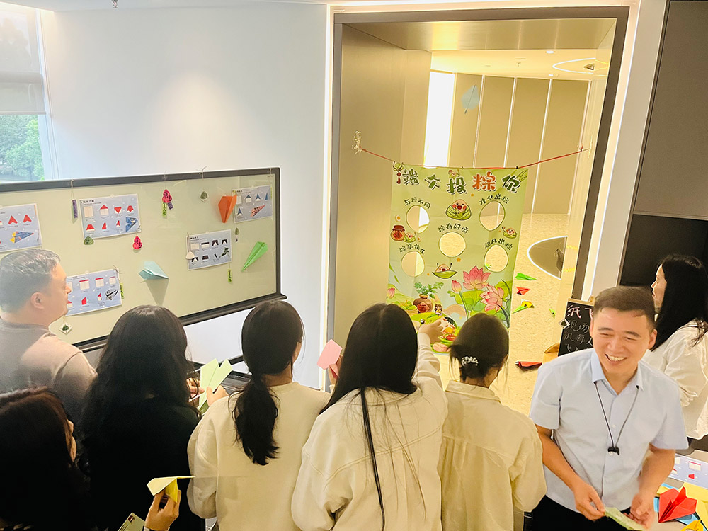 活动现场精心布置,艾草香囊与特色装饰交织出浓郁的节日氛围。夹粽子、套圈圈、纸飞机挑战赛等结合端午元素的趣味游戏摊位前人头攒动,加油声、欢笑声此起彼伏。员工们在愉快互动中感受传统文化魅力,增进彼此情谊,共同编织美好的文化记忆。